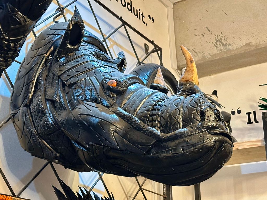 A levegőben gumi és festék szaga keveredik. A földön egymásra halmozva használt autó- és teherabroncsok, a falnak támasztva félkész táskák, a sarokban egy hatalmas elefántfej. Abdel Khattou lehajol, végigsimít egy vastag futófelületen, majd mosolyogva megszólal: