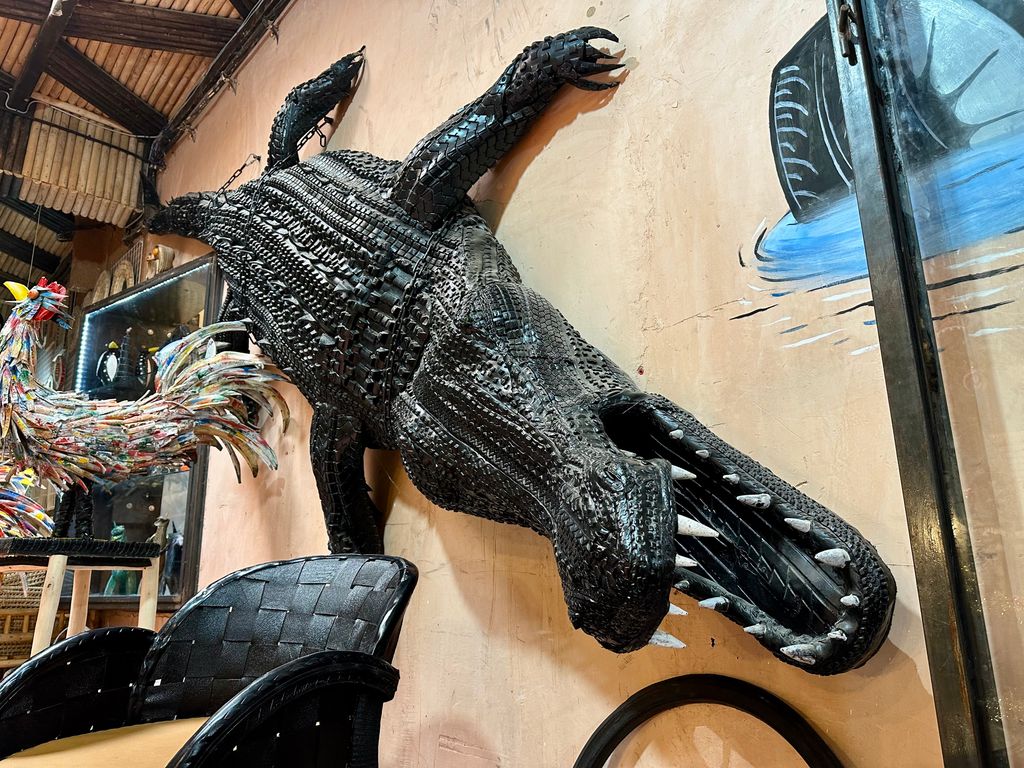 Amikor újabb vásárlók érkeznek, akik Abdelt keresik, a terem végében álló, méretes orrszarvúfejhez lépek. Árcédula nincs rajta, de a katalógus szerint 1700 euró, négyheti munka eredménye. A falon függő, életnagyságú krokodil megalkotása fél évet vett igénybe; ára 6700 euró.