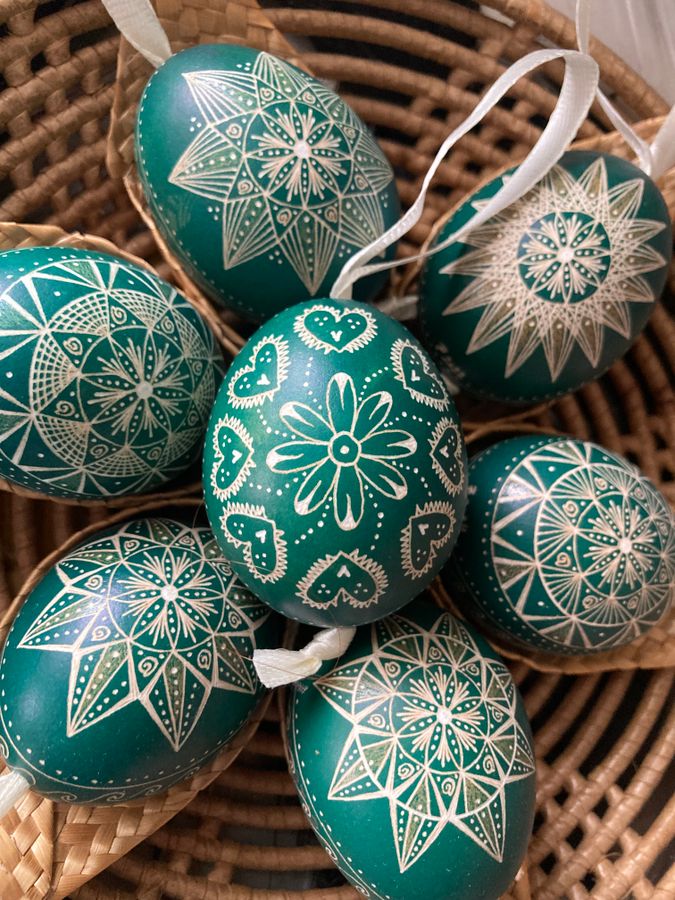 Alkotói utam időközben új területtel bővült, húsz éve praktizáló asztrológusként a két hivatást összekapcsoltam, és születési képletre komponált tojásokat is tervezek. De gyakran merítek ihletet a környezet vizuális elemeiből is, egy kovácsoltvas kapu szívformája például karcolt vagy viaszolt mintaként születik újjá a tojáson.