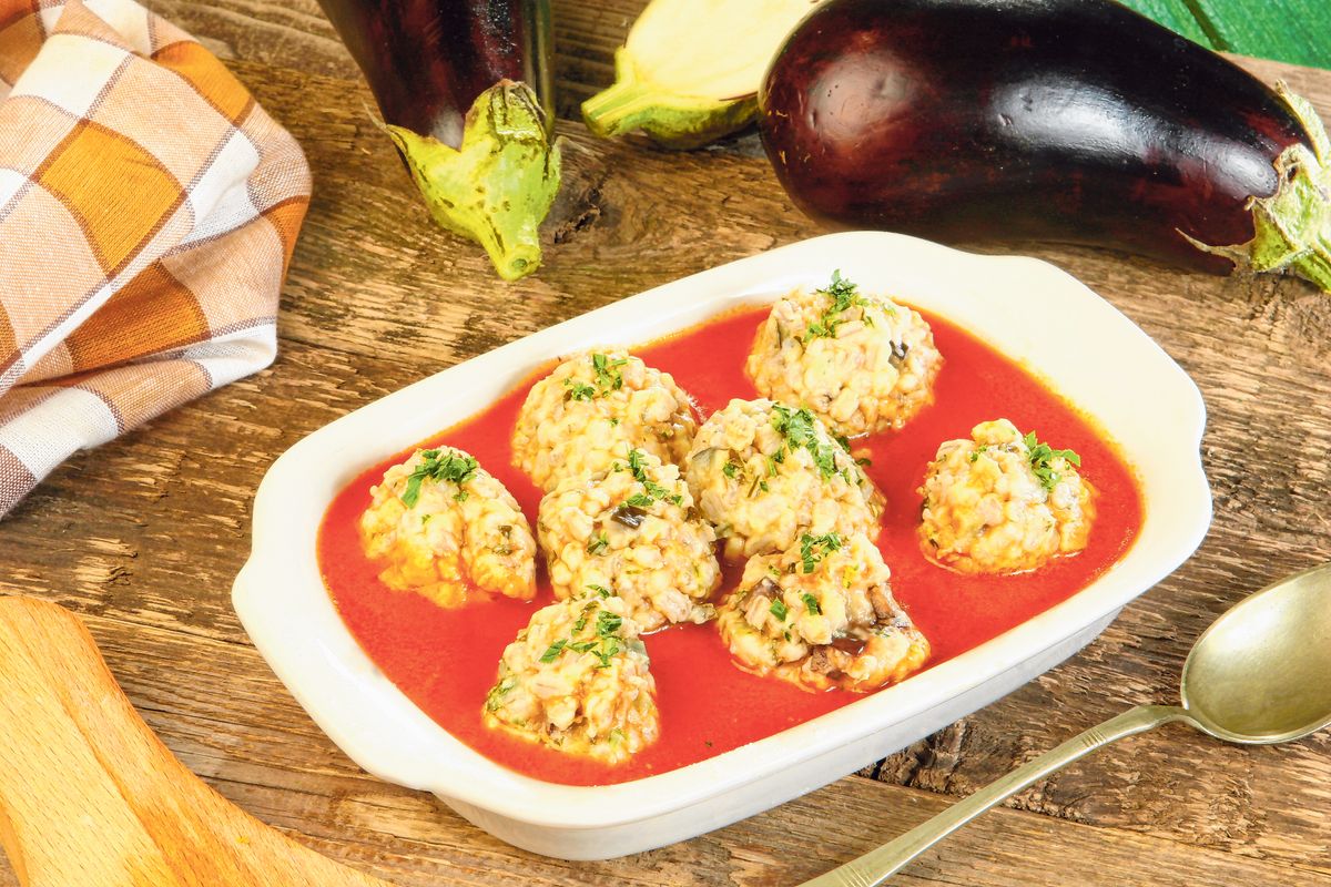 Padlizsános gersligombóc paradicsomos mártásban