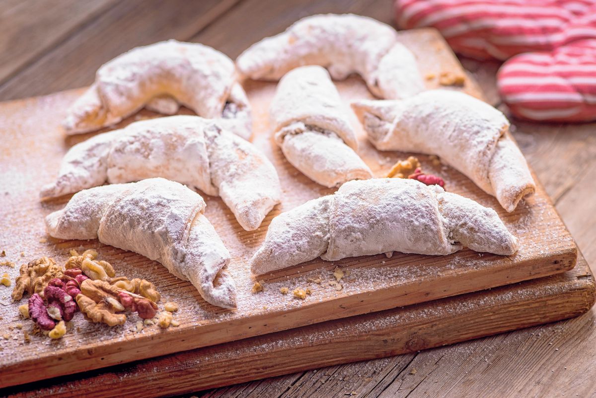 Kemény szilvalekvárral, vagy dió- vagy máktöltelékkel megtöltjük (a porcukorral elkevert darált diót, mákot felfőzzük egy kis tejben), kifli formára csavarjuk. Tepsibe rakjuk, 180 fokos sütőben megsütjük. Még melegen megforgatjuk vaníliás porcukorban.