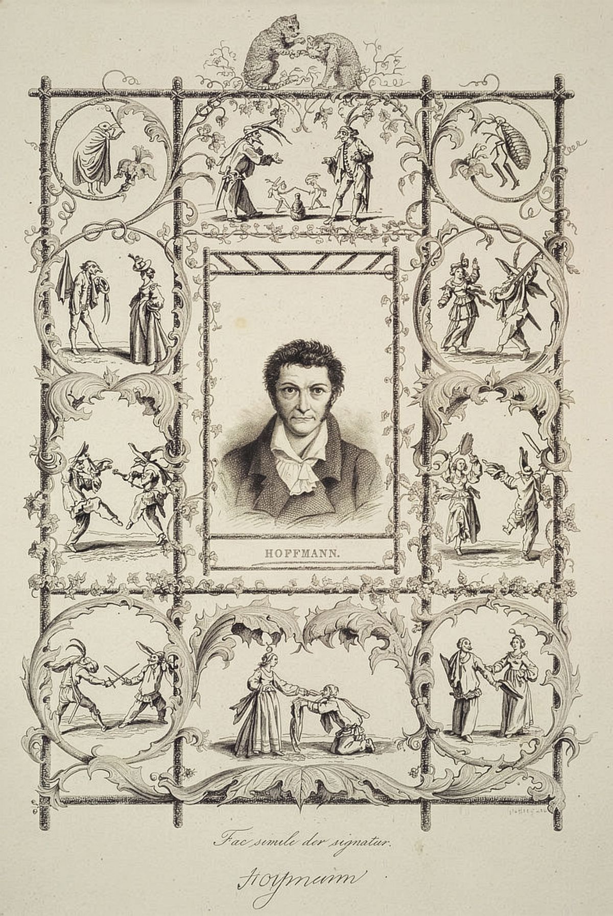 Tehát a titokzatos E. T. A.-ról néhány gondolat. Ernst Theodor Amadeus Hoffmann (eredetileg Ernst Theodor Wilhelm) Königsbergben született 1776. január 24-én és Berlinben hunyt el 1822. június 25-én, a német romantika egyik kiemelkedő írója, továbbá komponista, zenekritikus, karmester, jogász, grafikus és karikaturista. Az Amadeus keresztnevet művészi eszményképe, Wolfgang Amadeus Mozart után vette fel.