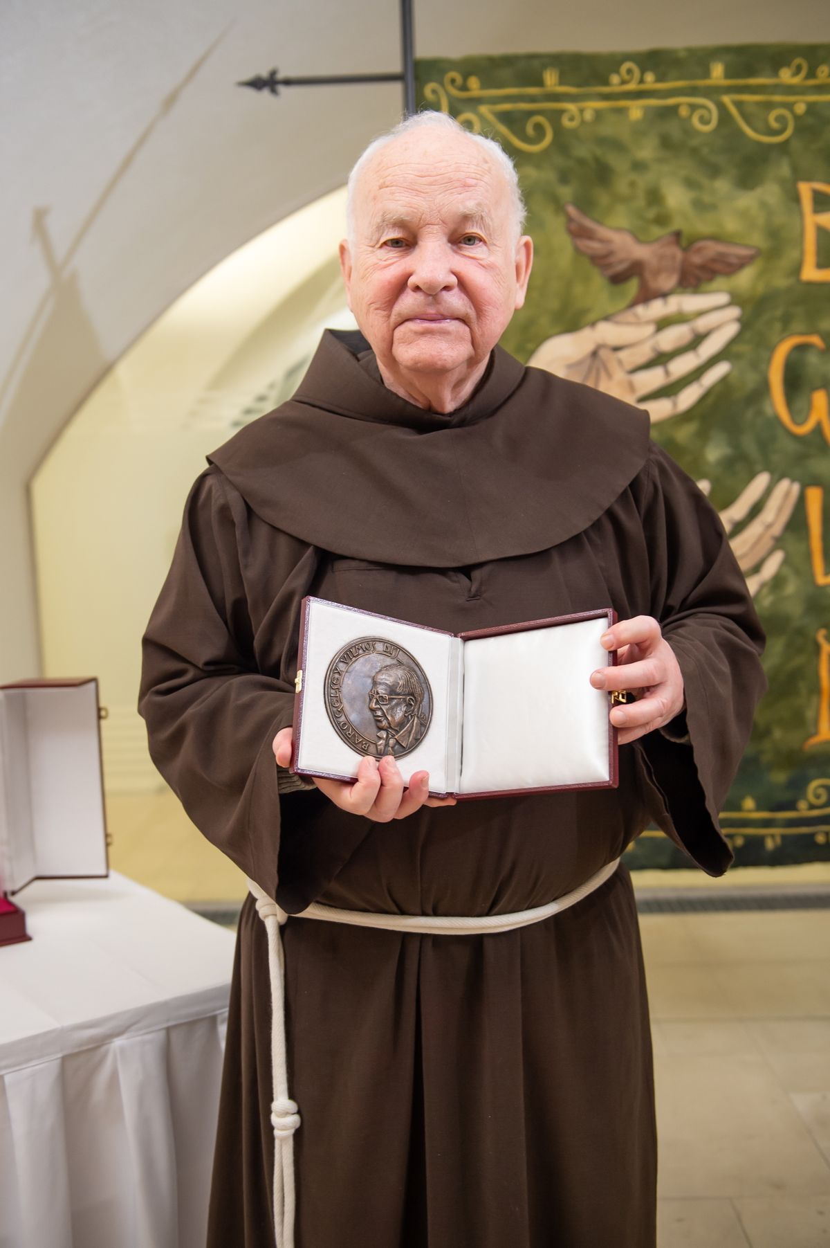 – Én erre magam nem vagyok méltó. Az édesapámra gondolok, aki hitben felnevelt az öt testvéremmel együtt, a tizenegy, börtönben szenvedő paptársamra gondolok, akikkel együtt éltem, ők neveltek, később velük tanítottam, a sok-sok üldözést szenvedő ferences rendtársamra gondolok, az ő nevükben, őket képviselve vettem át ezt a díjat.