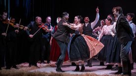 Kép: A Magyar menyegző című film sajtónapja Budapesten, a Lónyay-Hatvany-villában 2026. január 20-án. A Békési Miksa forgatókönyvéből készült alkotás a magyar néptánc és népzene erejét mutatja be egy romantikus történetbe ágyazva, Fotó: Balogh Zoltán, Forrás: MTI