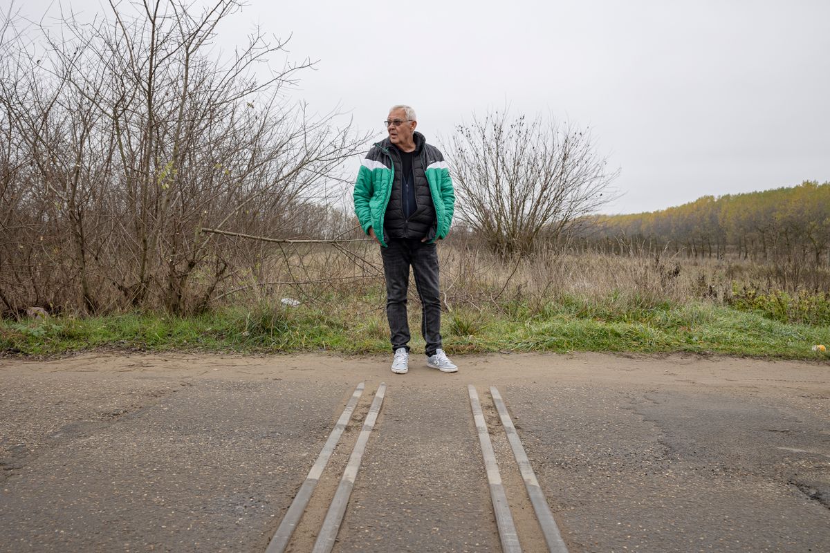 Fogalmunk sincs, hogy miért, egy keskeny dűlőúton állunk meg, de aztán Orosz Mihály ránk néz.