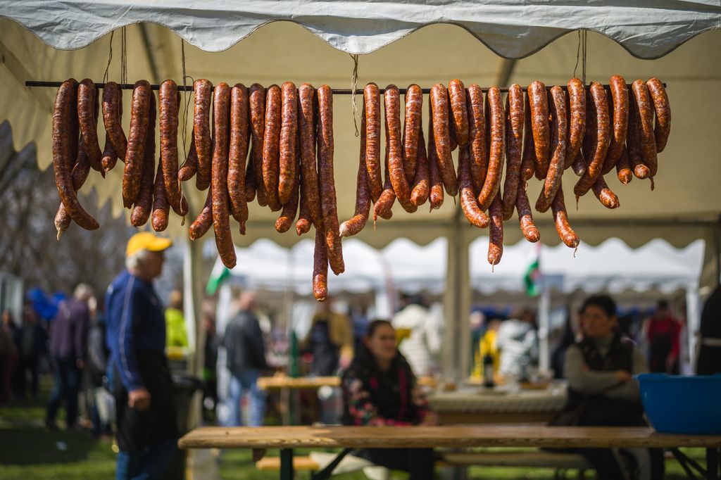 – Otthon már csak ritkán készítek kolbászt, egy-egy ilyen rendezvényen viszont a gyermekeimnek is meg tudom tanítani az alapokat. Nagy előny az életben, ha valaki tud valamit készíteni, nem a kész terméket vásárolja meg – magyarázza a karcagi Dániel család feje, hogy miért neveztek be. – Én még úgy tanultam meg, hogy gyermekkoromban a szüleim mindig az életkoromnak megfelelő feladatot adták a disznóvágáskor. Innen a rutin – teszi hozzá. Miközben kislányával töltik a kolbászt, elmeséli, hogy az eredeti karcagi kolbászban nincs paprika. – Nagyapám még e szerint a recept szerint készítette. Füstölés helyett a spájzban egy huzatos helyen megszikkasztotta. Amikor megérett, fantasztikus aromája volt – idézi fel emlékeit.