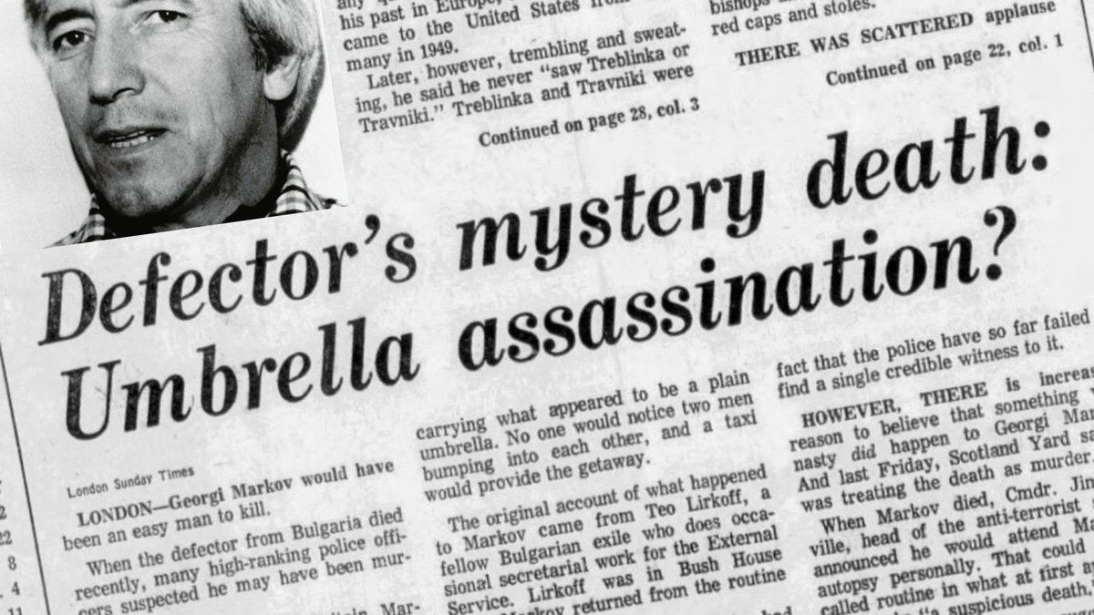 Georgi Markov bolgár ellenzéki írónak a rendszer nyílt színi bírálata lett a veszte. 1969-ben emigrált Londonba, ezért távollétében börtönbüntetésre ítélték, írásait otthon betiltották, még a könyvtárakból is eltüntették köteteit. Markov a BBC bolgár adása és a Szabad Európa Rádió munkatársa lett, cikkeiben ostorozta a kommunista rezsimet és annak első számú vezetőjét, Todor Zsivkovot.